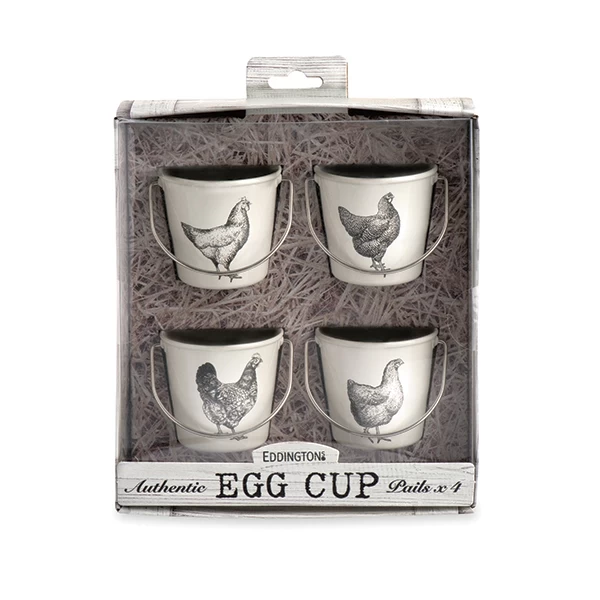 Les 4 coquetiers authentic en métal accompagneront vos brunchs et petits-déjeuners parfaits ! En forme de seau, vous y déposerez vos oeufs à la coque pour une présentation originale. Vous dégusterez vos oeufs au coeur coulant de manière rigolote avec ces supports au motif cocotte !