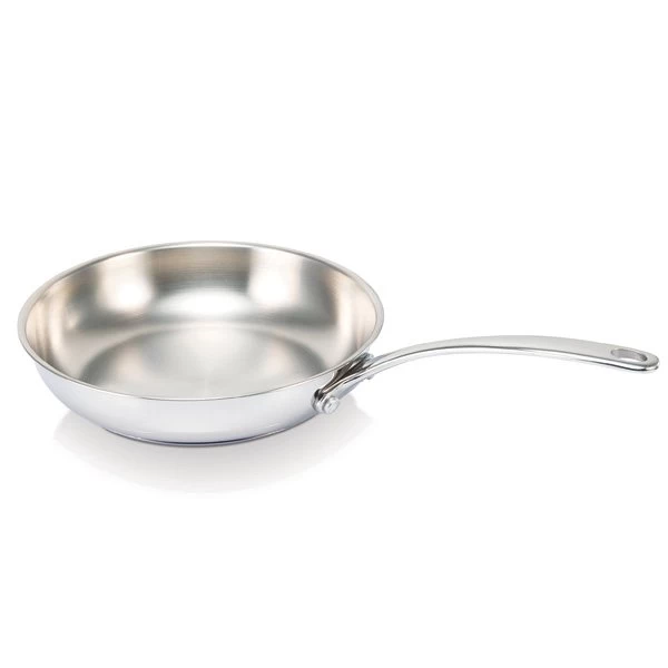 La poêle tout inox 24 cm Belvia est composée d’un corps tout inox avec un extérieur brillant et un intérieur mat.
