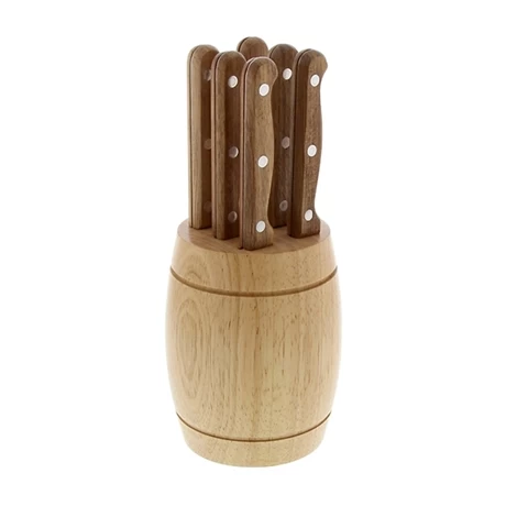 Le bloc de 6 couteaux Rustika Pradel Excellence est composé de six couteaux dentés, idéaux pour toutes sortes de viandes. Leur manche en bois d’acacia est solide et facile à prendre en main. Accompagnés du bloc de rangement, les couteaux se rangent aisément et offrent un design traditionnel et élégant.