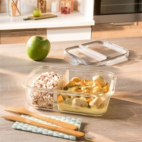Cette boîte peut aussi bien s’utiliser en boîte de conservation qu’en lunch box. Pratique, les deux compartiments, hermétiques et indépendants l’un de l’autre, permettent une double conservation et évitent aux aliments ou aux sauces de se mélanger.