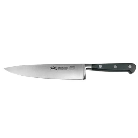 En acier inoxydable renforcé au carbone, le couteau cuisine Les forgés est très résistant. Son manche satiné ne glisse pas.