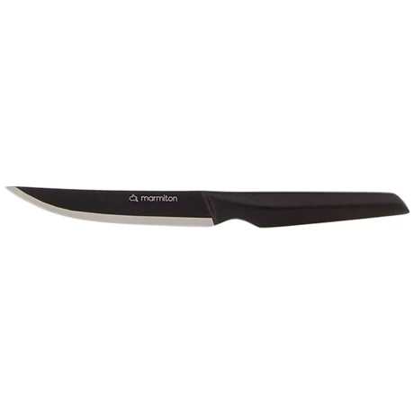 Le couteau utile noir passion Marmiton est composé d’une lame fine de 12 cm, idéal pour des découpes précises et agiles d’aliments. Avec le revêtement antiadhésif de la lame, les aliments ne collent pas, parfait pour faciliter le nettoyage. D’une épaisseur de 2 à 3 mm, la lame possède une émouture creuse pour la rendre extrêmement fine et proposer une coupe nette. Avec son manche en acier 430 noir, la lame au design noir offre un design harmonieux et élégant.