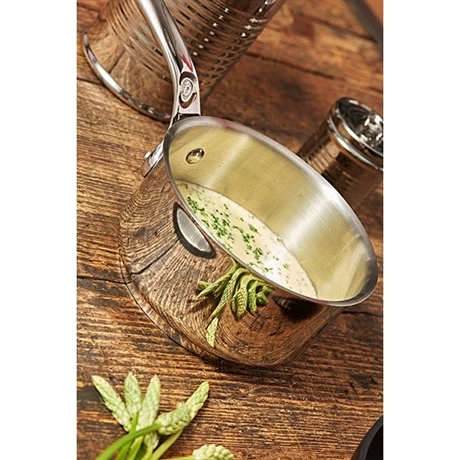 La Casserole Milady 18 cm fait partie de la gamme de poêles et casseroles DeBuyer Milady qui hérite du savoir faire de l’un des derniers fabricants français d’ustensiles de cuisine de qualité. La gamme Milady associe la robustesse d’une gamme professionnelle complémentée d’une finition polie brillante et d’un manche en fonte d’inox ergonomique. En inox, la casserole possède un fond sandwich.