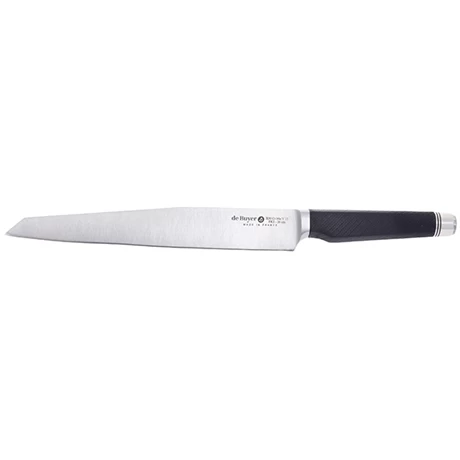 Le couteau à découper 26 cm FK2 de la marque de Buyer sera le partenaire idéal pour couper en tranches viandes, grosses volailles, jambon cuit et gros poissons. Grâce à sa lame en acier inoxydable durci et trempé, ce couteau découpera toutes vos préparations durablement sans aucune corrosion. Son manche en polymère fibre de carbone et son système de contrepoids ajustable vous procureront un excellent confort de coupe et une prise en main parfaite.