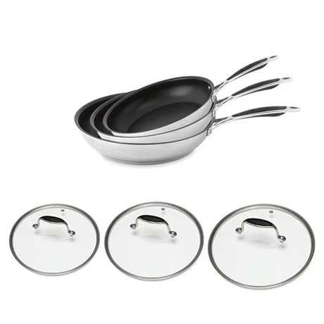 Le lot de 3 poêles en inox antiadhésives et 3 couvercles en verre et inox Excell’Inox de 20, 24 et 28 cm est idéal pour compléter une cuisine avec des ustensiles de qualité.