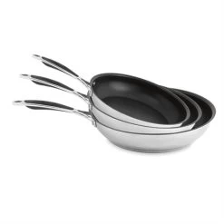 Ces poêles, en acier inoxydable brossé de qualité supérieure, ont un fond encapsulé 3 couches avec un disque en aluminium et un fond magnétique en inox. Ce fond épais permet une bonne diffusion de la chaleur. Ultra résistant, il offre d’excellentes propriétés antiadhésives à votre poêle qui résiste durablement à l’abrasion et aux rayures.