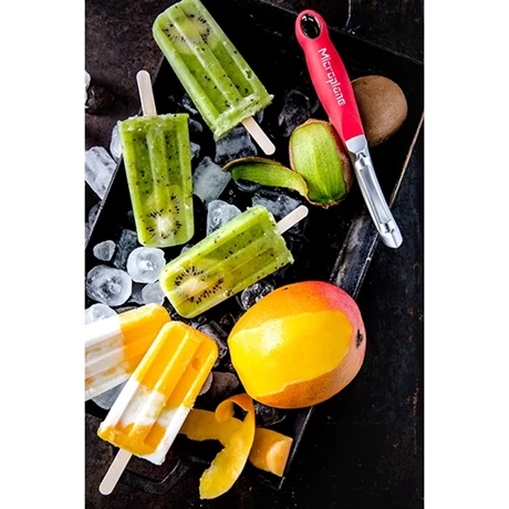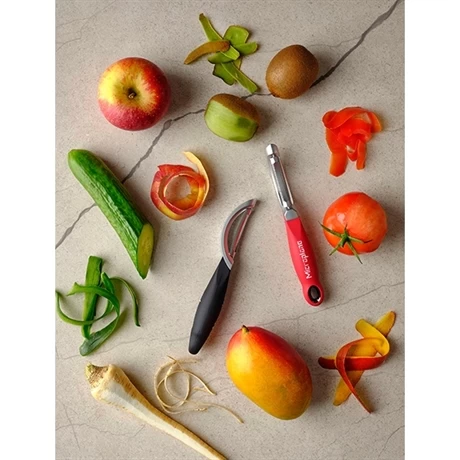 Conçu spécialement pour les fruits et légumes à chairs tendres, l’économe à lame dentelée Microplane profite de l’expérience de l’enseigne dans les ustensiles de découpe pour vous offrir des performances professionnelles et une ergonomie optimale. La lame en inox dispose de petites dents très aiguisées et tranchera dans les deux sens, avec une mobilité à 30° pour s’adapter à votre geste. A l’extrémité, une encoche a été installée pour retirer les yeux de pommes de terre et les parties abîmées des aliments. Nous vous conseillons de l’utiliser notamment pour les mangues, tomates, kiwis, poivrons ou pêches et tous les types de textures proches de celles-ci.