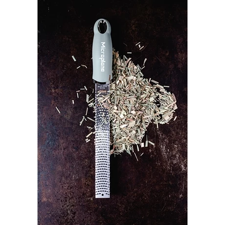 Le zesteur de la gamme Premium Classic Microplane est un ustensile incontournable en cuisine, apprécié des professionnels et des amateurs. Sa forme longue et étroite très reconnaissable vous permet de râper agrumes, fromage, chocolat, gingembre et fruits secs sans effort. Ainsi finement râpés, ces aliments libèrent leurs saveurs et apportent une touche subtile à votre préparation.