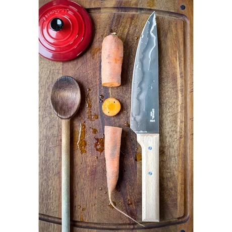 Ce Couteau Chef Multi-usages N°118 lame inox 20 cm de Opinel est idéal pour couper, émincer et hacher avec un mouvement de balancier. Sa lame de 20 cm en acier inoxydable est réputée pour son tranchant et sa résistance à la corrosion. D’une épaisseur de 3 mm, elle restera rigide et stable lors de la découpe. En hêtre issu d’exploitations françaises, le manche est dur et résistant. Recouvert d’une couche de vernis, il est protégé contre l’humidité et les salissures.