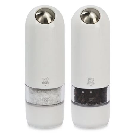 Design résolument contemporain pour ce lot de 2 moulins sel/poivre Alaska 17 cm à la fois ludique et vintage, avec sa forme galbée et ses boutons tout en rondeur. En plastique et métal pour un mélange harmonieux et ergonomique. Ingénieux, les moulins s’utilisent d’une seule main, une lampe à la base permet de contrôler le dosage, et un réservoir transparent indique le niveau de remplissage.