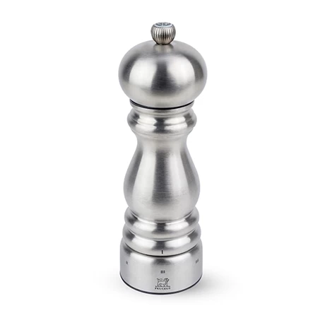 Ce moulin de 18 cm de hauteur fait partie de la collection « Chef » de Peugeot qui reprend le modèle le plus emblématique de la marque dans une version plus moderne en inox. Les deux moulins manuels sont fabriqués en France par Peugeot. Leur mécanisme U Select permettant un réglage très précis est garanti à vie.