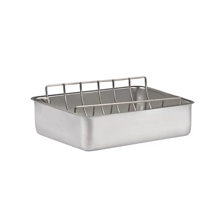 Les belles dimensions de 36 x 25 x 8 cm du plat à four vous permettent de cuisiner en grandes quantités. En acier inoxydable 18/10 et avec une finition mate, le plat Inoxriv est esthétique. Il accueille une large grille en acier inoxydable pour la cuisson de vos grillades. De vos cylindrique, cette grille est pratique pour placer vos ribs et côtelettes à la verticale ou vos rôtis entiers.