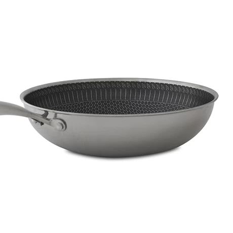 Cette fabrication en sandwich combine les avantages de chaque matériau ; l’aluminium garantit une cuisson uniforme des aliments ainsi qu’une économie de l’énergie utilisée tandis que l’inox assure une montée rapide en température sans point de surchauffe. Cet assemblage est complété par un revêtement antiadhérent révolutionnaire, résistant à l’utilisation d’ustensiles en métal. Réalisé en inox 18/10, reconnu pour sa robustesse et ses qualités hygiéniques, ce wok possède une grande durabilité ainsi qu’une facilité d’utilisation et de nettoyage.