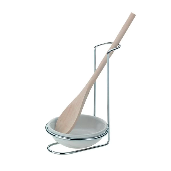 D’un design sobre, le repose-cuillère en céramique permet de poser vos ustensiles de cuisine lorsque vous cuisinez afin de garder un plan de travail propre. Son support est en métal chromé apporte une touche moderne dans votre cuisine. Pratique, sa coupelle en céramique blanche permet de récupérer les aliments qui auraient pu tomber. Elle se nettoie facilement à l’eau savonneuse ou au lave-vaisselle.