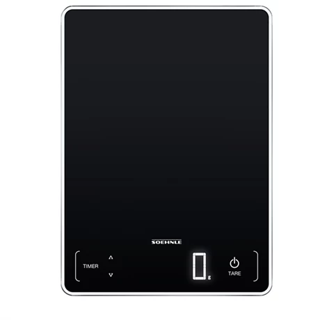La large surface de la balance Soehnle permet d’accueillir vos plus grands récipients sans risque de déséquilibre. Autres atouts précieux : une fonction minuteur pour conserver l’affichage le temps nécessaire et une accroche murale bien pensée pour garder votre balance toujours à portée de main. Elle fonctionne avec 3 piles 1.5 V AAA fournies.