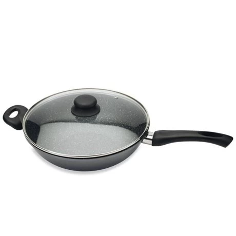 Ce wok fait partie de la gamme Dur comme la pierre composée de casseroles, poêles antiadhérentes, sauteuses antiadhérentes avec couvercle, poêle à poisson, crêpière, wok et faitout.